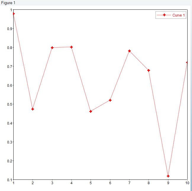 plot(rand(1, 10), 'r:+', 'linewidth', 1);