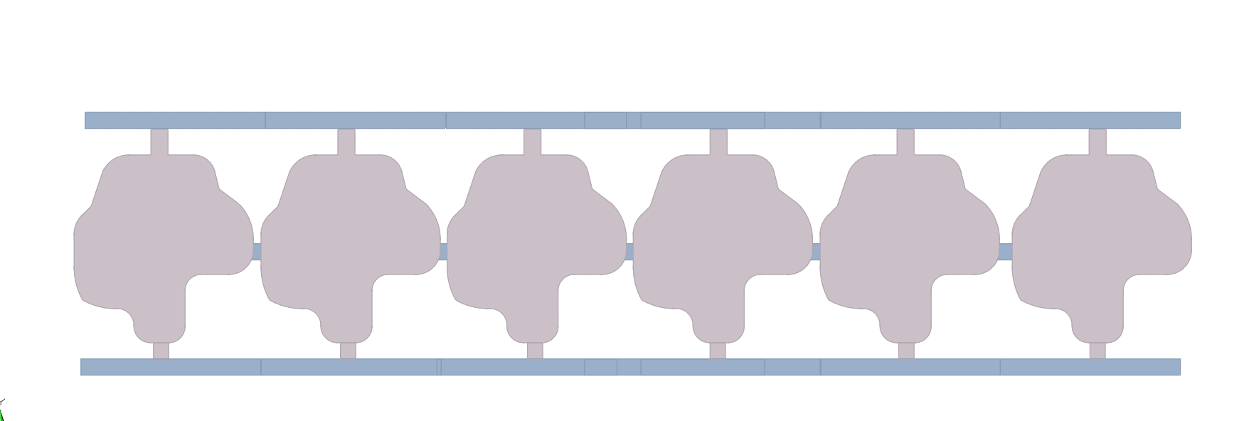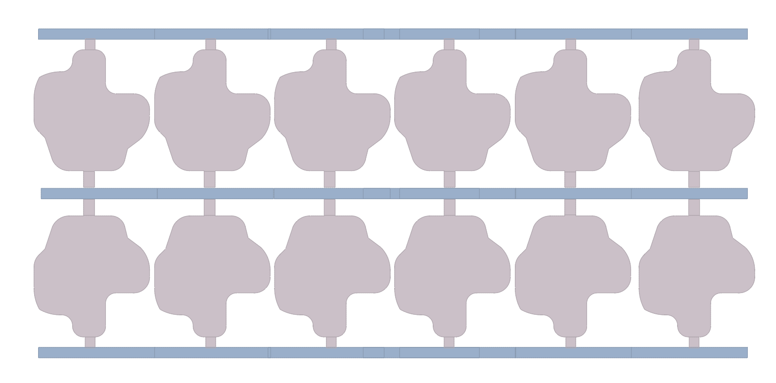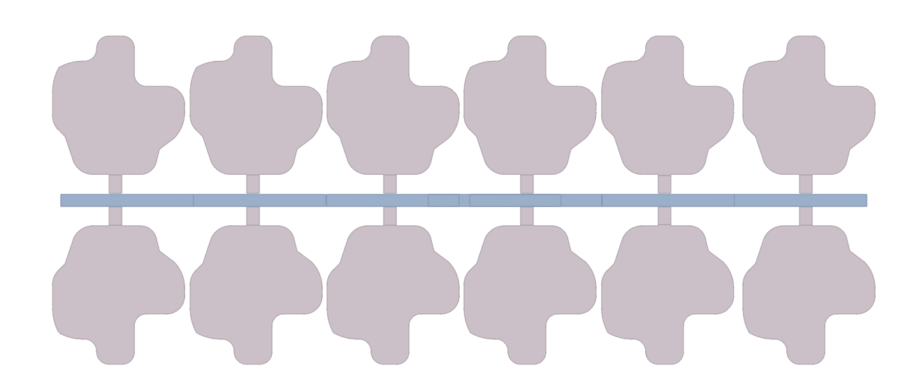 | Double-sided and nested | The carrier is attached to both sides of the part and it is