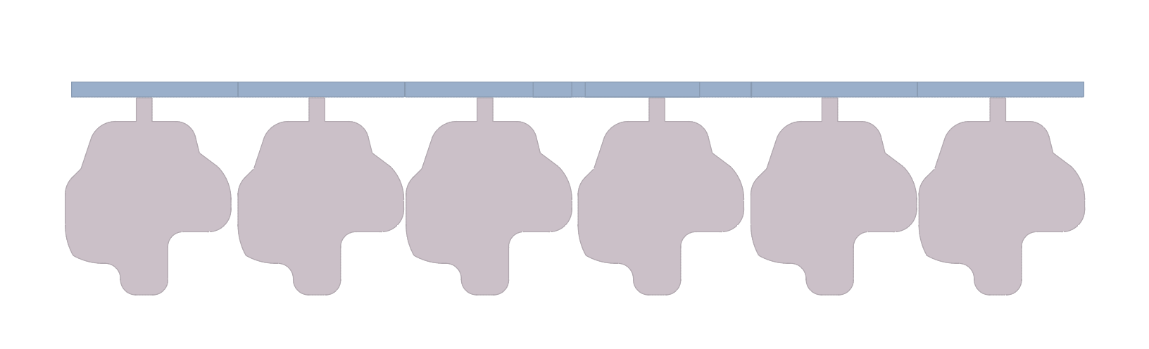 | Double-sided and central | The carrier is in the center with the parts attached on both