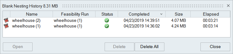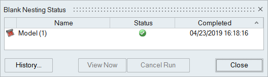 After the run has successfully completed, view the results of the blank nesting. The nested results are available in .iges file format for downstream applications.