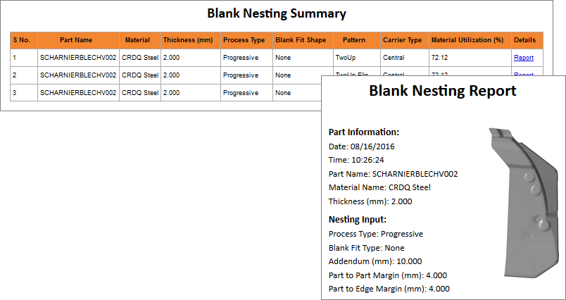 Use the following table to understand the process and components of blank nesting within the stamping process.