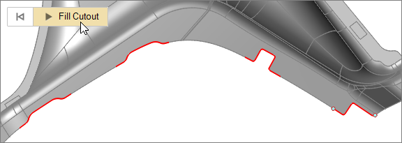 - Left-click to select the start and end points of the cutout. Select the four cutouts indicated in the following image. Identified cutouts are selected and highlighted red.