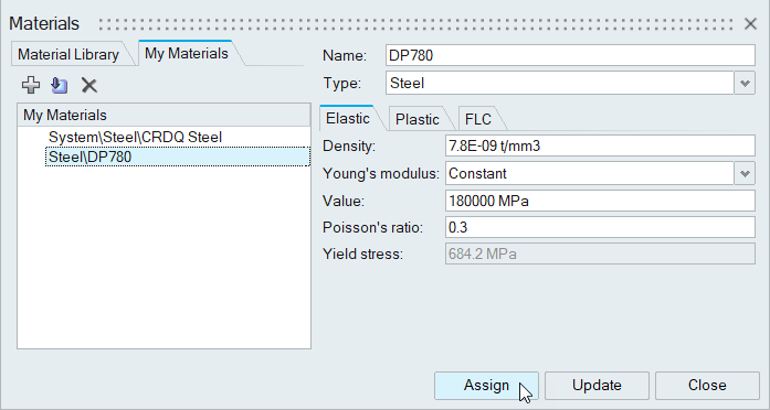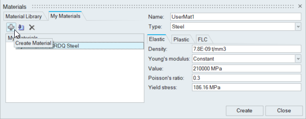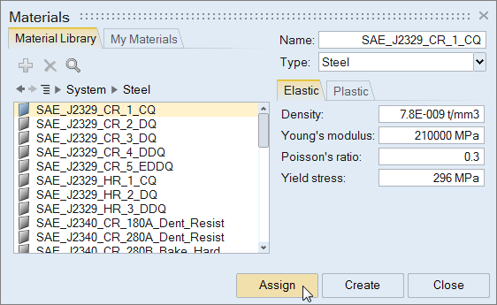 - In the Materials window on the Material Library tab, select the material SAE_J2329_CR_1_CQ.