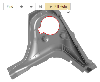 By default, all of the holes in the model are selected and highlighted red. The total number of holes found is displayed above the Defeature tool group.