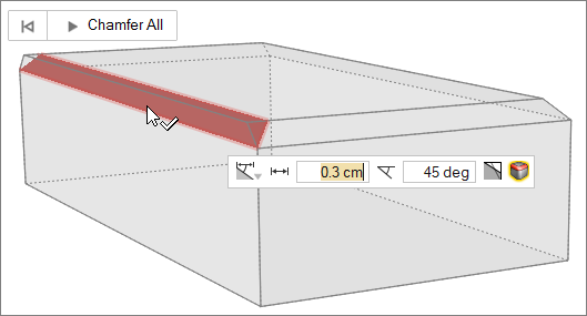 in the microdialog. - If a distance/angle text box is highlighted red due to an invalid edge selection, press Ctrl+Z to undo or press Ctrl while clicking to deselect the edge. The previously valid selection will reappear.