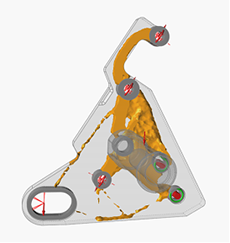 Figure 4. Mass Target of 20%This means the resulting shape's load path is not well-defined. Comparing the three results, the one with the mass target of 30% would be the best starting point for your design, as it provides the lowest mass that connects al off the support and force locations.