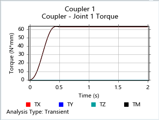 By default, the plot shows the torque in one of the coupled joints. Next we will compare the rotational speed of both joints used in the coupler.