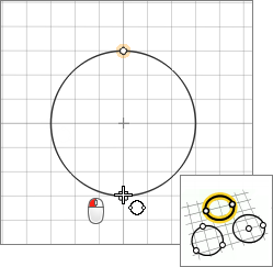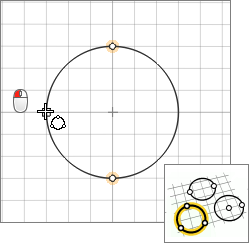 Sketch a circle by defining three points, two diametric points, or the center and a point