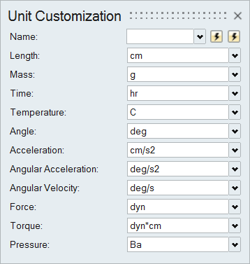 You can customize the display units for length, mass, time, temperature, angle, acceleration, velocity, force, torque, and pressure.