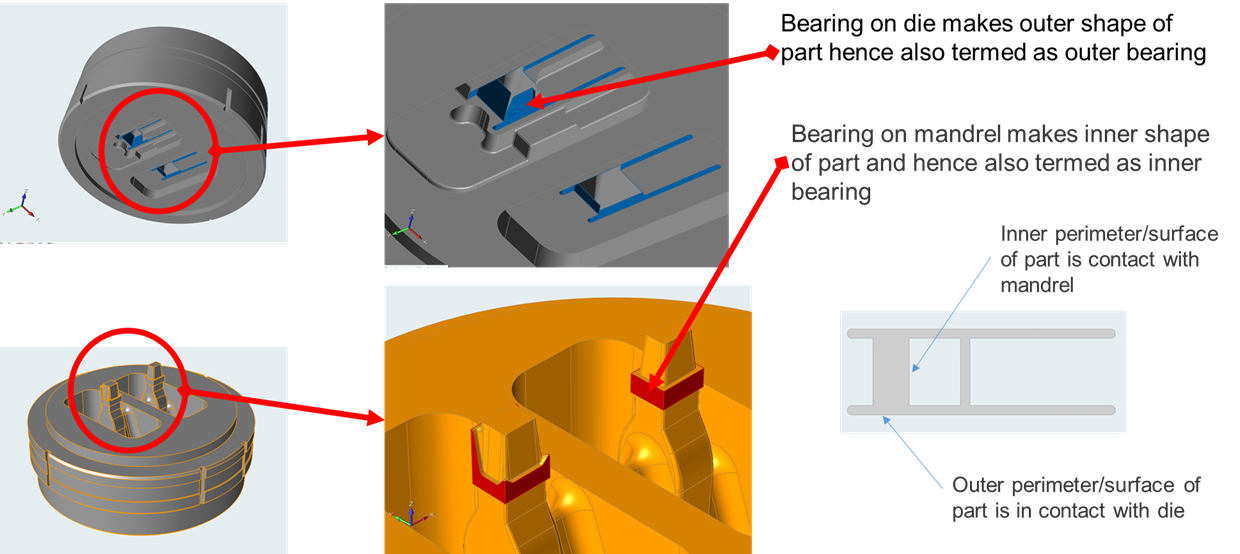 - The bearing on the die makes the outer shape of the part, hence they are also called outer bearings.