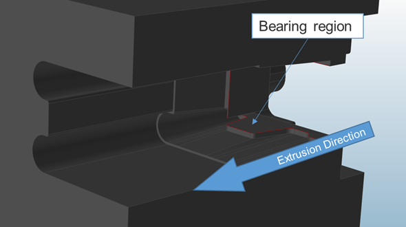 The bearing is the last point of contact in the extrusion die where the workpiece takes the final desired shape. The bearing region is a critical part of the extrusion die, as it controls the metal flow through the die.