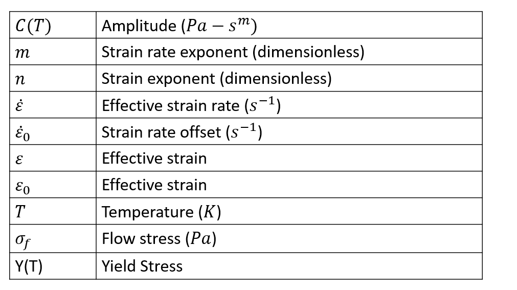 | Coefficients | With this option, the parameters Amplitude and ConstantY can depend on temperature and you can specify them using a TABLE or FUNCTION. The only difference between the Coefficients and None is that properties are constant in the case on None. |
