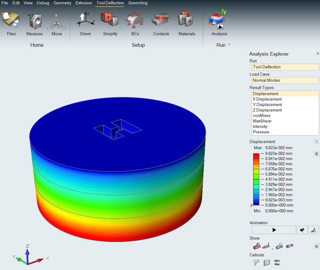Use the Show Analysis Results tool to view the results of an analysis in the Analysis Explorer. View and animate results, add callouts, and compare results from different runs.