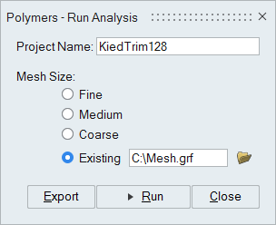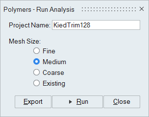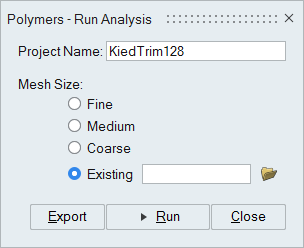 - Medium is the preferred option. If the model has many fine features, selecting fine is recommended. If it is a simple model, coarse option can be used. To start from existing mesh, click on Existing and select the mesh file.