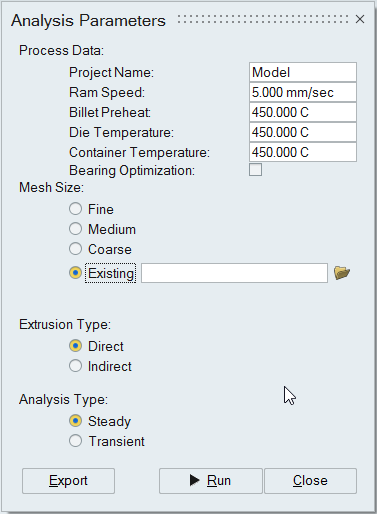 - Medium is the preferred option. If the model has many fine features, selecting fine is recommended. If it is a simple model, coarse option can be used. To start from existing mesh, click on Existing and select the mesh file.