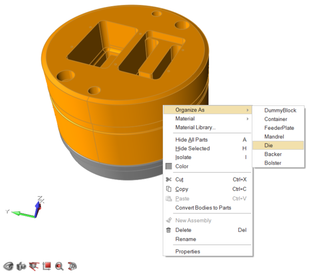 Your model may contain workpiece components. However, they have to be organized with standard names as in the extrusion tab. If the model contains billet, it will be used to automatically determine where the billet touches the tool and apply pressure loads there.