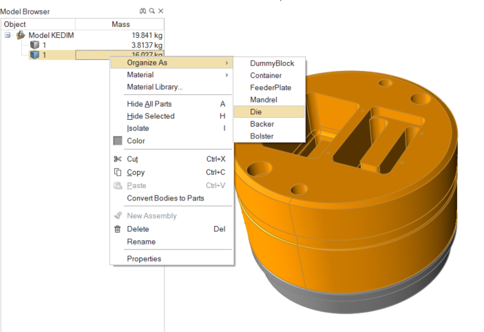 Organizing tool components is an important step and can be performed anytime while setting up the model, but would ideally be organized immediately after cleaning the geometry.