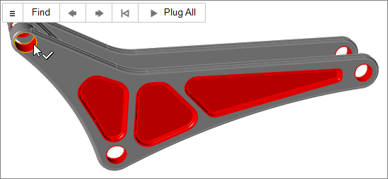 The Plug tool will attempt to identify chains of connected holes or pockets by searching upward, toward the outer face.
