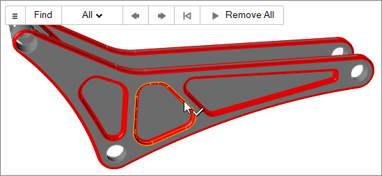 on the guide bar. - If there are several contiguous rounds or fillets, double-click one to select the entire chain. Selecting an adjacent round/fillet will add to the chain. When removing a round/fillet that is part of a chain, the entire chain will be removed.
