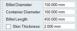 2. In the small window that pops up, specify billet and container dimensions and click Enter.