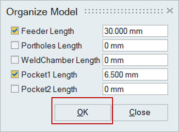 Inspire Extrude will cut the flow volume length based on the component lengths specified and organize them into their respective components automatically.