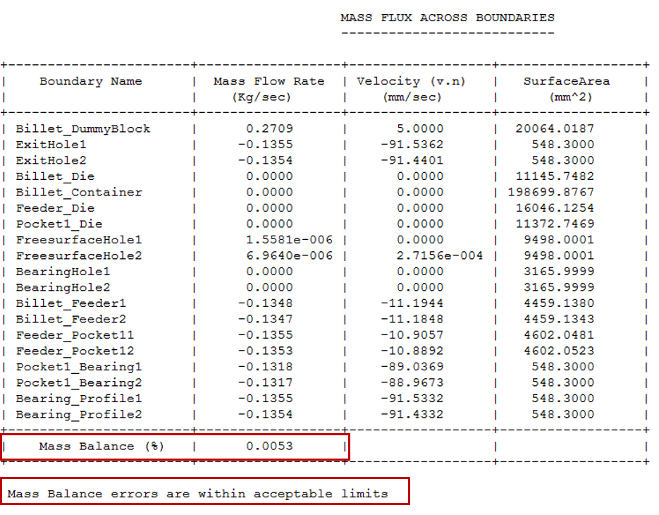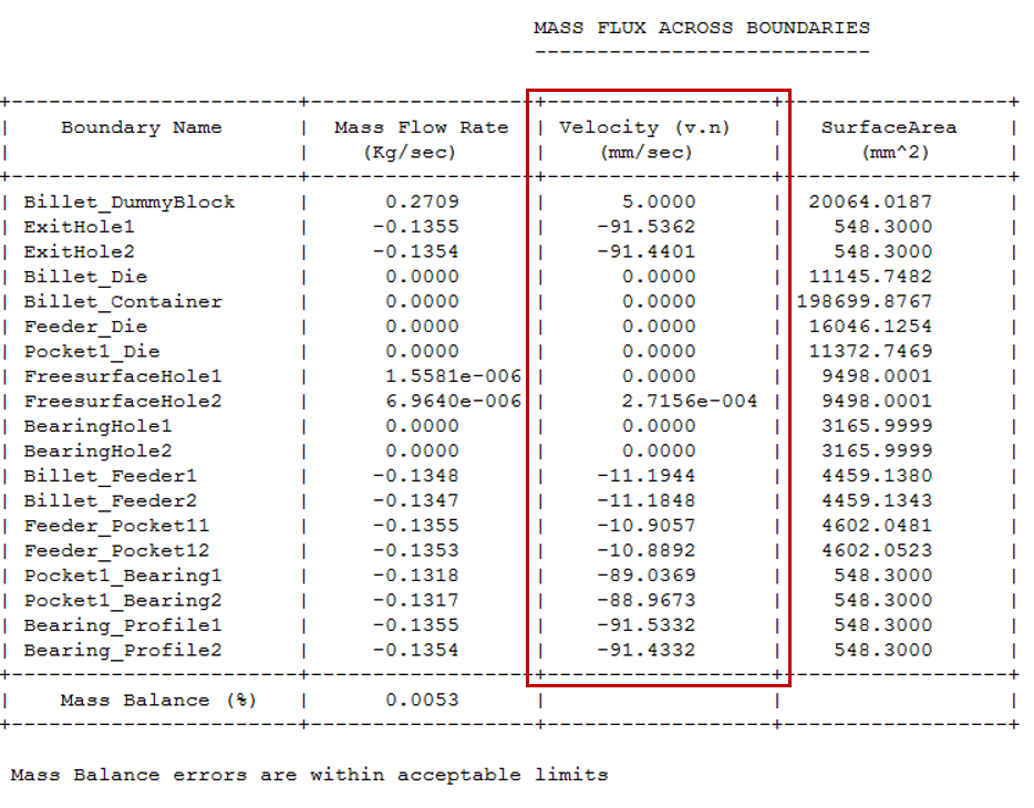15. Check the average velocity of the material entering/leaving through each boundary surface. If any of these checks fail, verify the boundary conditions.