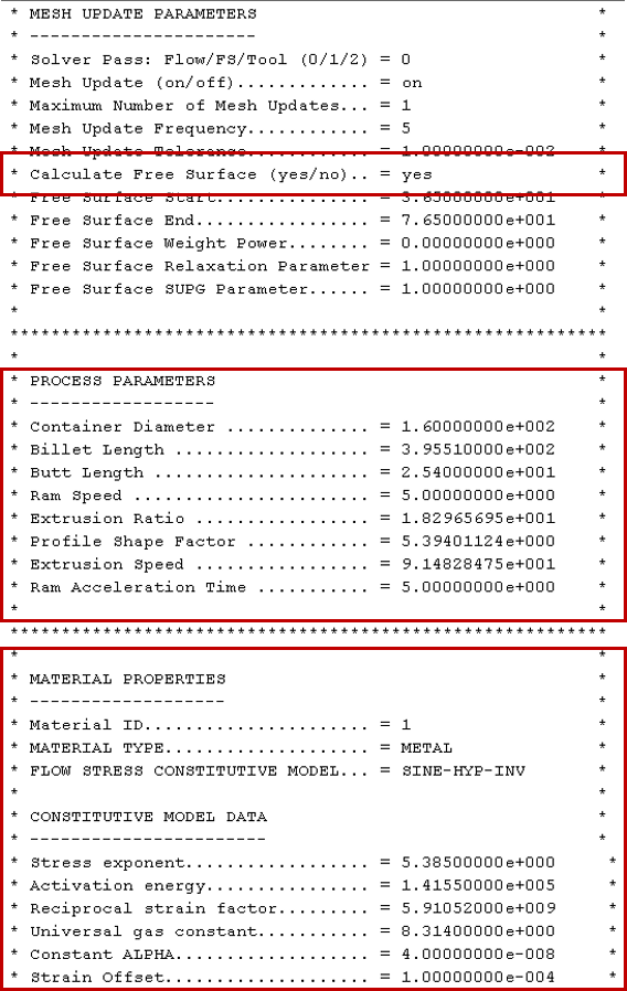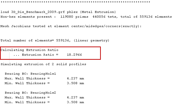 If the value of the Extrusion Ratio is not correct, inspect the inflow and outflow boundaries in the model to verify and correct them.