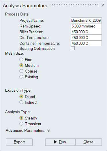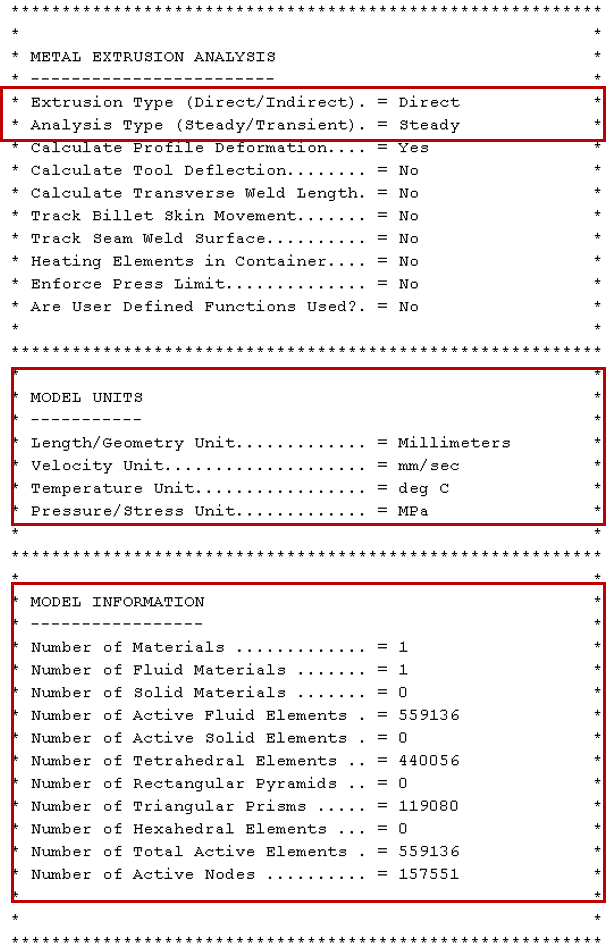Verify whether the Extrusion Type is Direct or Indirect and whether analysis is Steady or Transient.