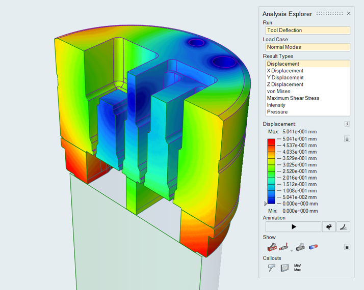 Use tool deflection analysis to determine where and how the tool is likely to deform during the extrusion process and help the die designer make corrections in the tool components accordingly.