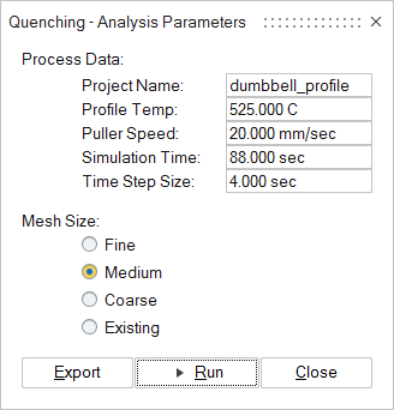 Enter and review the following parameters for the Quenching Analysis: