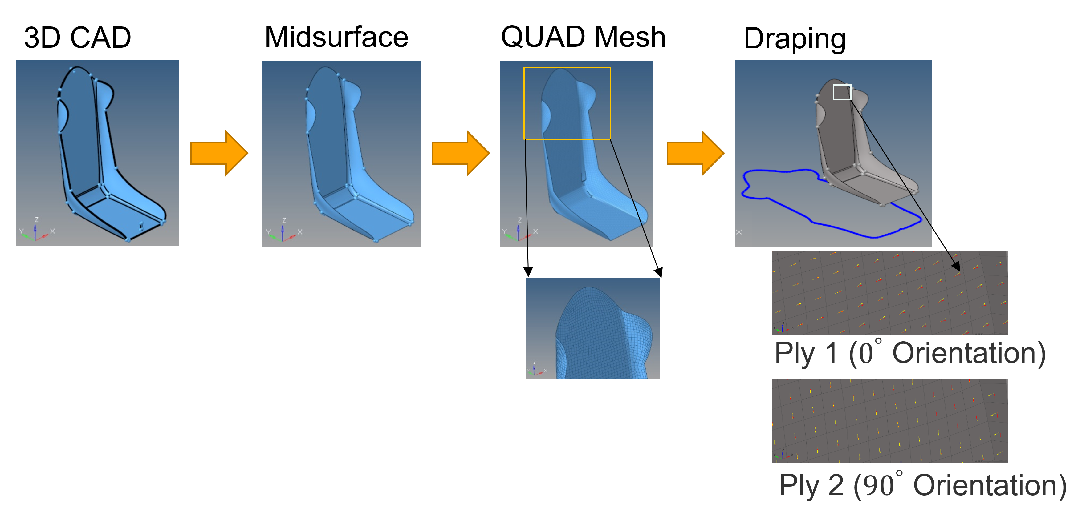 - Inspire does not support post-processing of draping results.