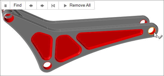 The Holes tool allows you to select holes or pockets and find all that are larger, smaller, or similar (±5%) in size. It will also attempt to identify chains of connected holes or pockets by searching upward, toward the outer face.
