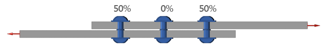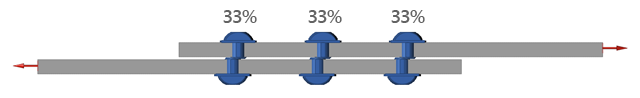 For real fasteners, the actual load carried will be somewhere between these limit values. For example, 30% on the center rivet and 35% on each of the outer rivets.