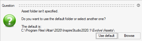For example: C:\Program Files\Altair\2021.0.1\InspireStudio2021.0.1\Evolve\Assets