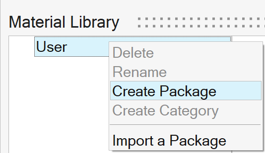 Organizzare la libreria materiali Utente, che contiene materiali personalizzati salvati dall'utente, creando i propri pacchetti di materiali e categorie.
