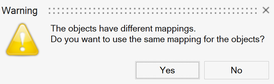 - No: gli oggetti con mappatura diversa non saranno interessati dalle modifiche, ma rimarranno selezionati.