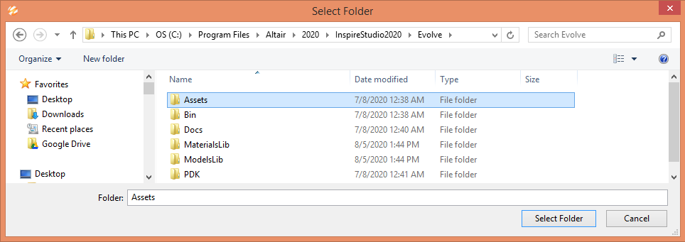 - 正しい場所にブラウズして、このフォルダを選択します。