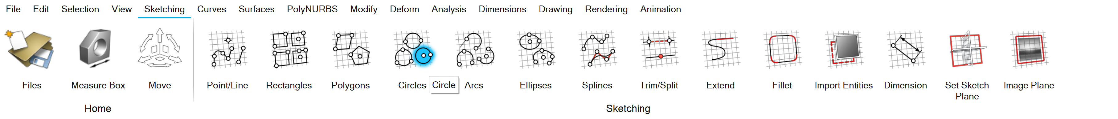 スケッチなど、リボンにあるアイコンには、1つまたは複数のツールにアクセスできるものがあります。アイコンにマウスを合わせると、個々のツールに青い枠線が表示されます。