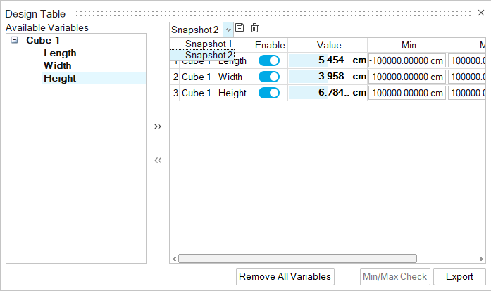 Remove all variables Click the Remove All Variables button. Create multiple snapshot tables, setting different values for variables in each table - Click Save snapshot
