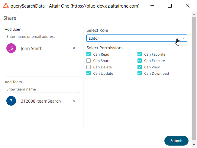 - Editor: User can execute, read, update, download, add as a favourite, and view details.