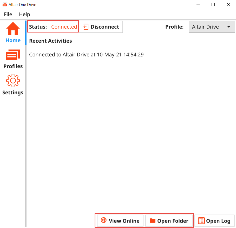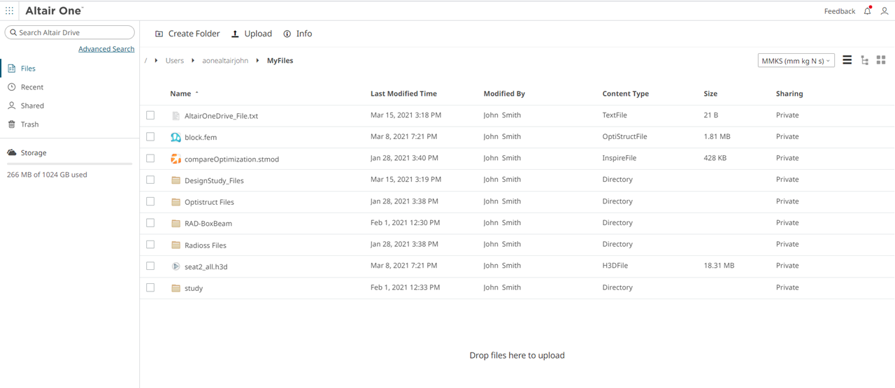 The Altair Drive Web application is launched. Login with your Altair One account credentials. your will be navigated to Altair Drive, Files tab.