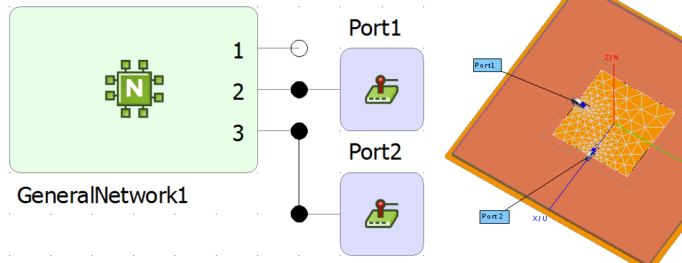 - Connect the input ports of the patch to the output ports of the network in the schematic view.