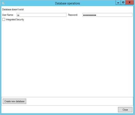 Select the Integrated Security check box to use Windows Authentication. The specified user must have system administrator rights to create a new database. |