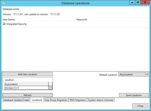 3. Click the Refresh button to display existing in the database locations.