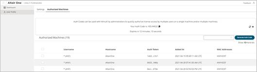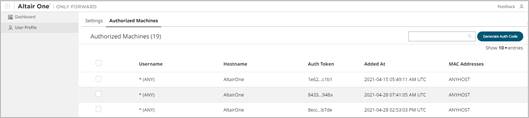 ii. In the portal, click User Profile and then click the Authorized Machines tab in the main display.