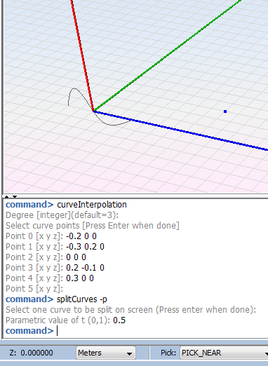 This option is useful when a curve need to by split at a point on the own curve. The point is specified as a parametric coordinate (between 0 and 1), and the pick mouse functions may be useful to split the curve close to any desired point.