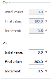 Theta and Phi sections used to mark the initial and final values in degrees that define the angular sweeps.