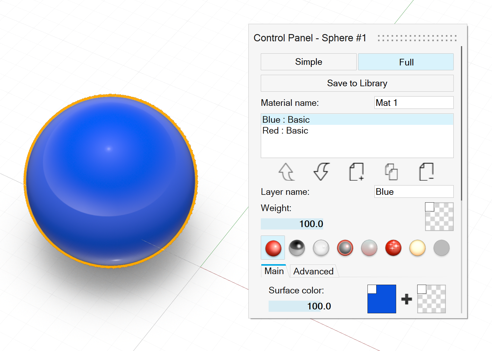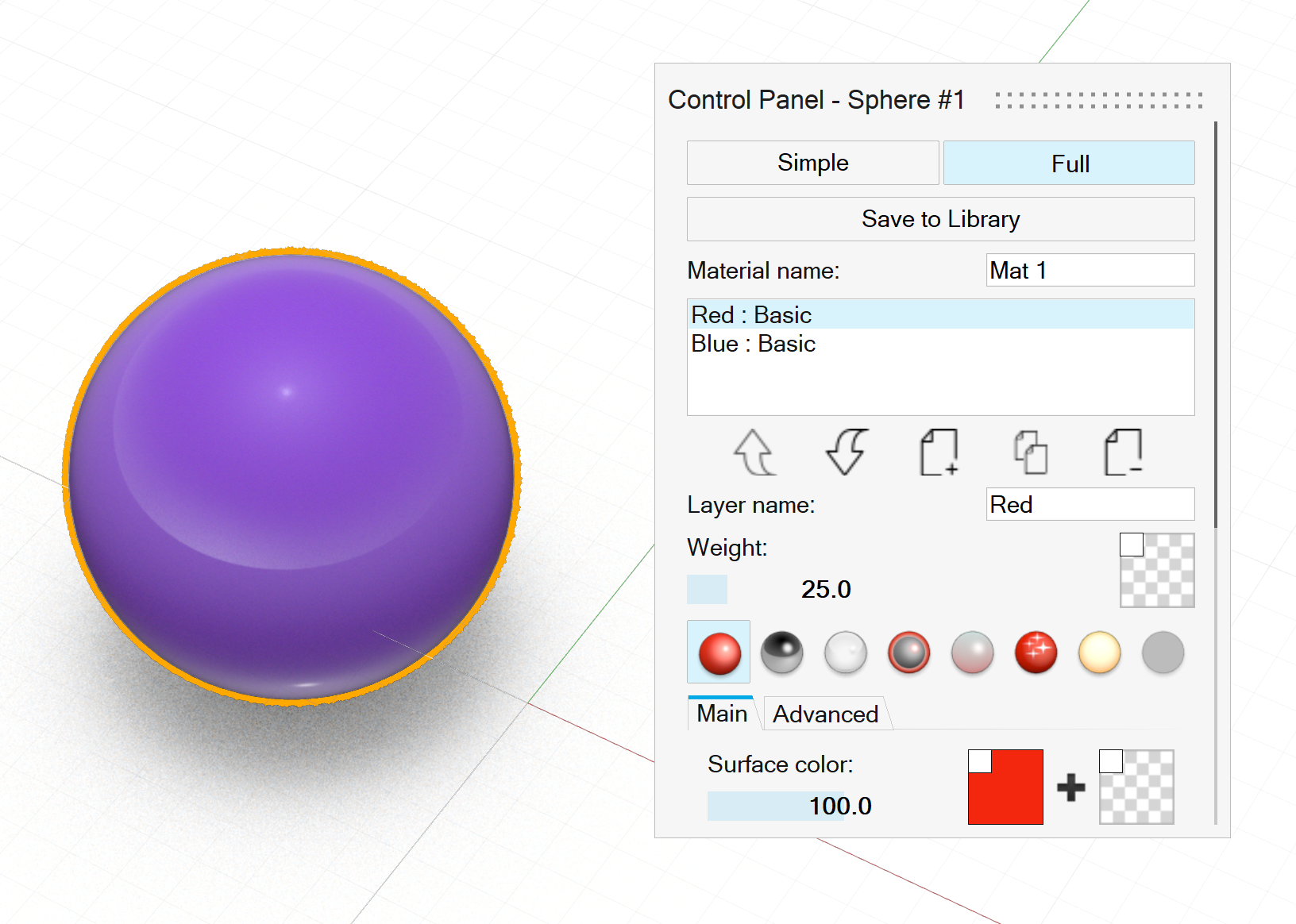 レイヤーの重みは、マテリアルに上から下に影響します。最上位レイヤーの重みが100%の場合、その下のレイヤーはエンジンによって無視されます。