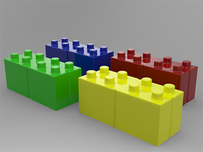 図 11. 中心:0.1cmノーマルスムージング:滑らかなレンダリングを実現します。デフォルトでは有効になっていて、連続的なシェーディングが得られます。稜角などのきわめて鮮明で細かい変位の表現に有効なファセットを使用してレンダリングする場合は無効にします。