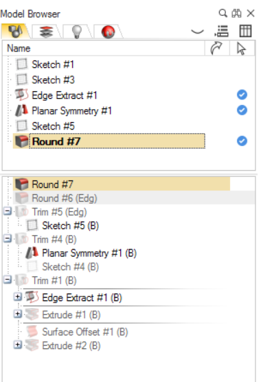 オブジェクトを右クリックするとコンテキストメニューが開き、レイヤーの表示/非表示、パートの編集、履歴の削除、およびオブジェクトを以前の状態に戻すオプションが表示されます。これにより、既存のオブジェクトの特定の状態から新しいオブジェクトを作成する際に役立ちます。